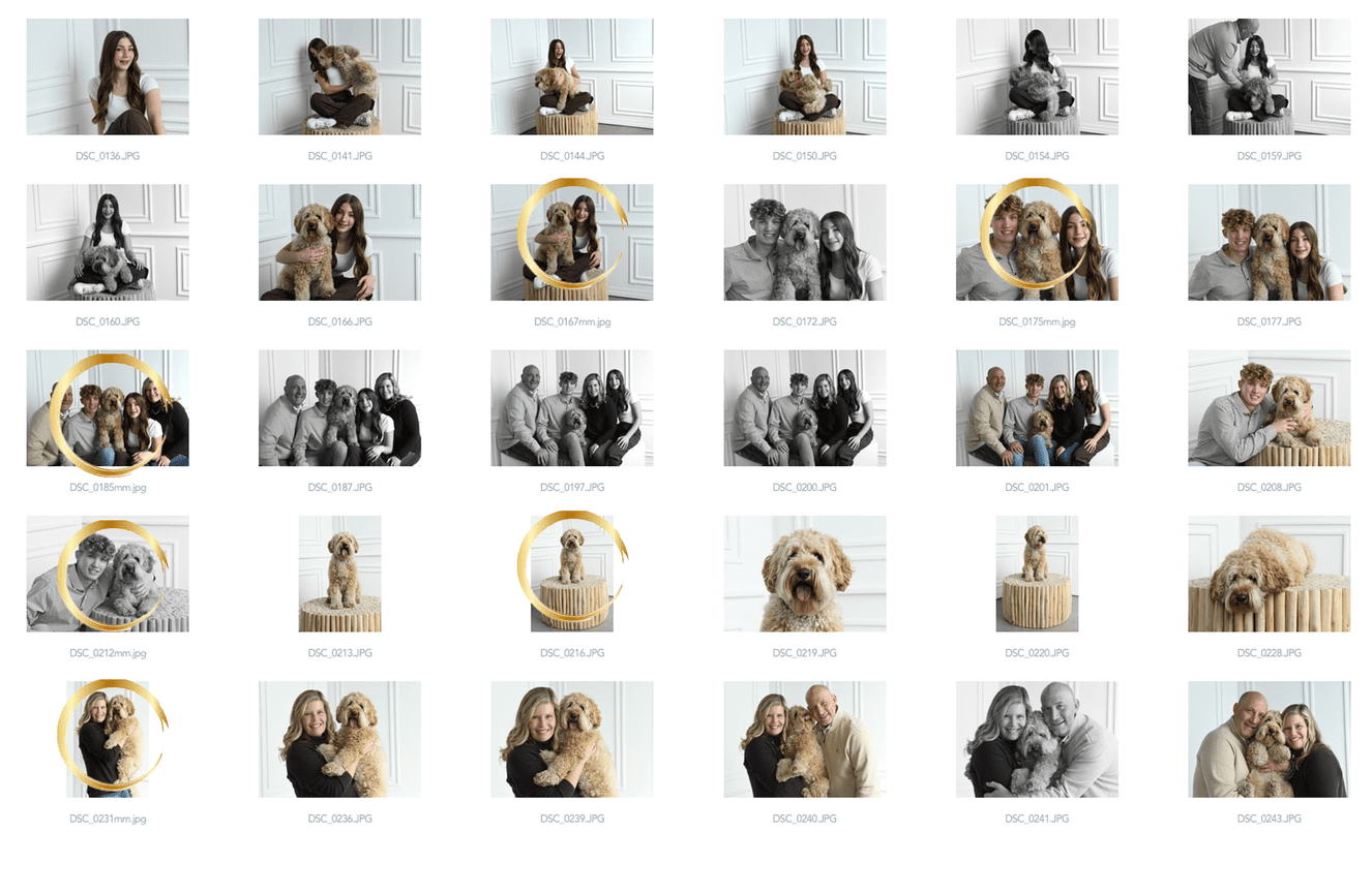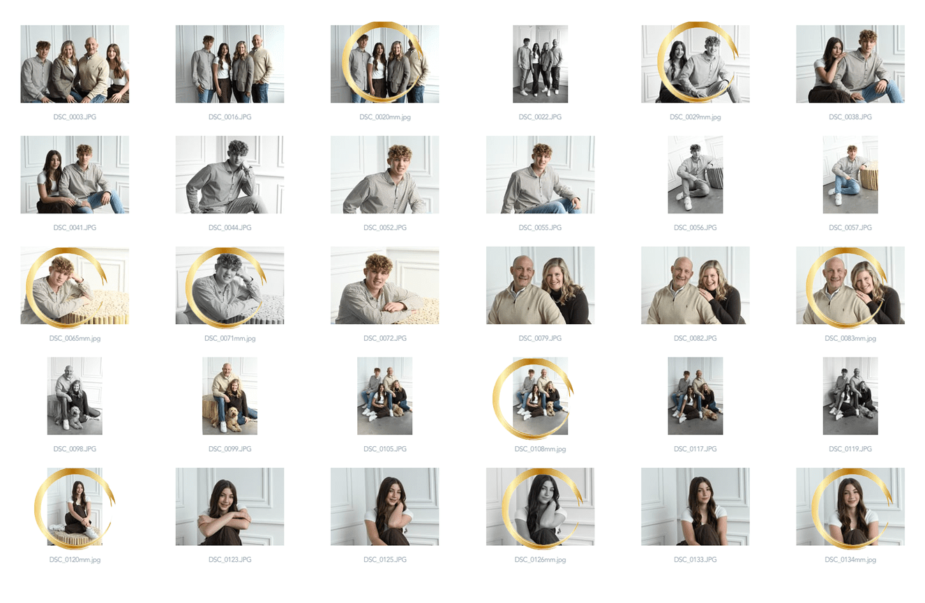 Below are examples online galleries. You'll see all of your best images from the session. When you choose the 20 Image Collection, you will receive 20 of your favorites touched up images plus all of the other digital images from your online gallery.